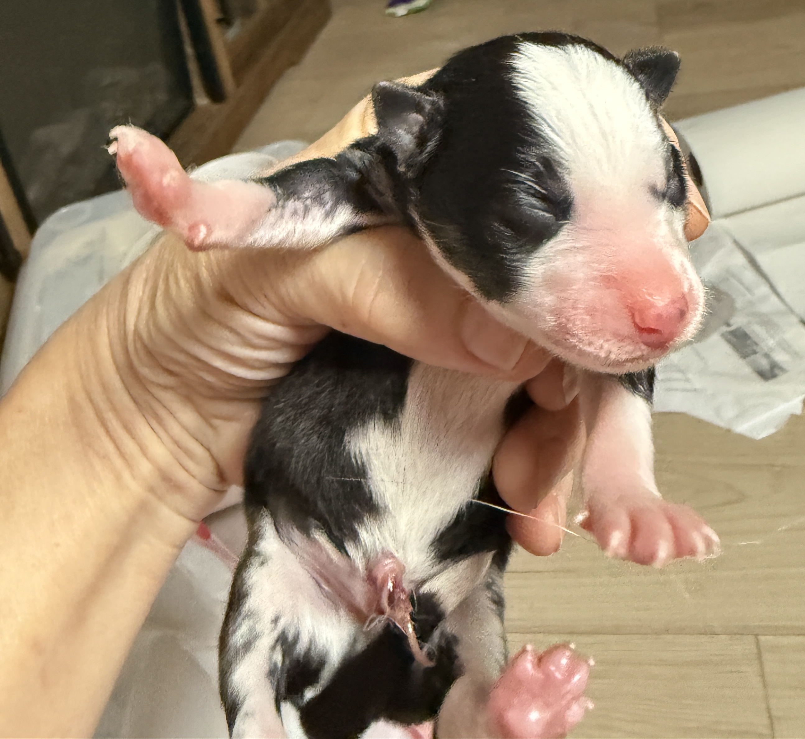 Penny gave birth on November 7th to seven beautiful and healthy puppies... 5 boys and 2 girls. They'll be ready for their new home in time to kick off the new year: January 2nd.